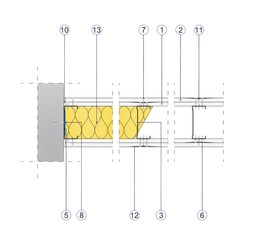 Powyższe parametry dotyczą przegrody wykonanej z profili z blachy o grub. 0,6 mm. Przed przystąpieniem do wykonania przegrody należy dobrać właściwy sposób połączenia ze stropem, w zależności od projektowanego ugięcia. Dopuszczalne warianty określone są w klasyfikacji ogniowej nr 06041/15/R24NP.